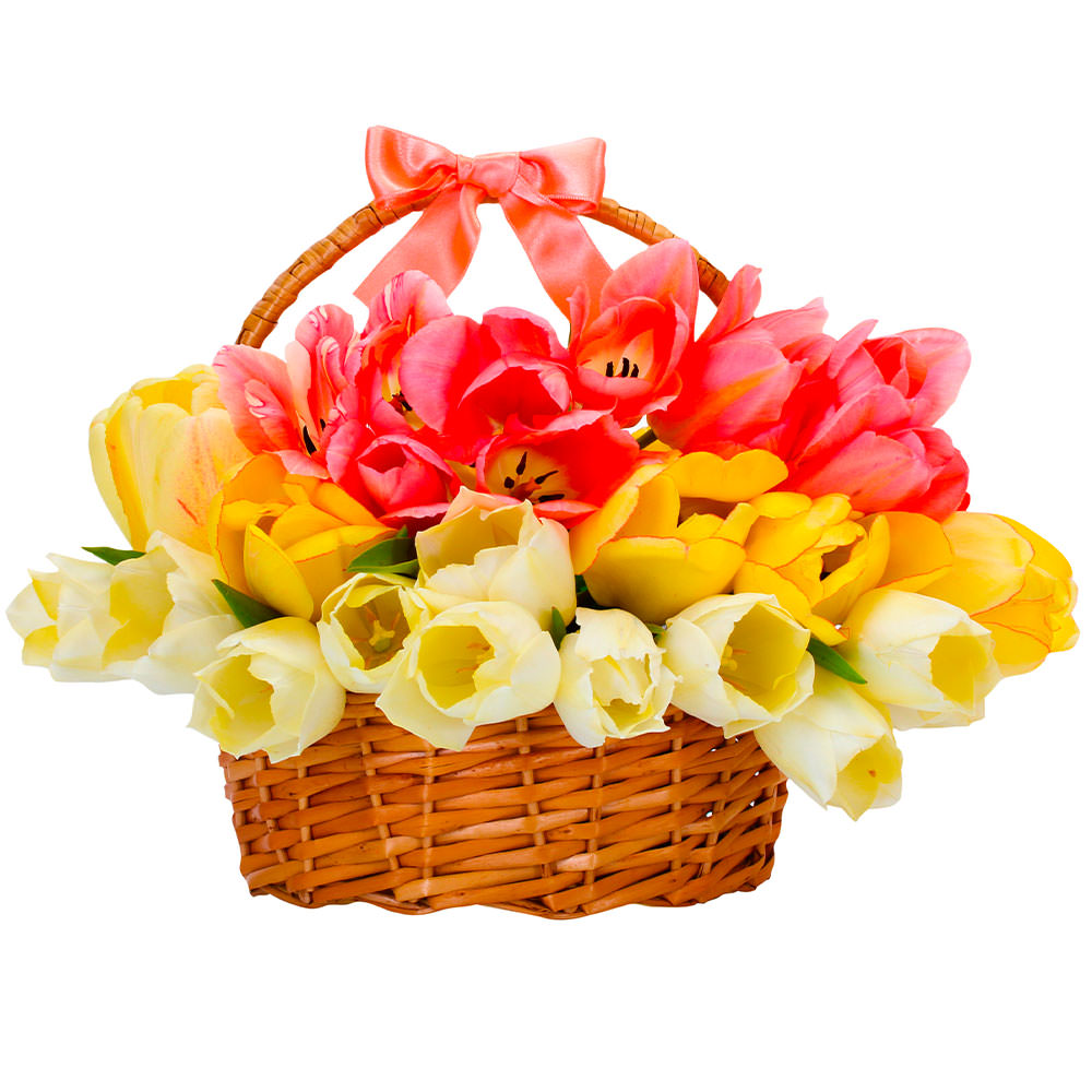 Тюльпан розовый, тюльпан белый, тюльпан желтый.
